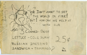 Nates and Leon’s advertising card for the #3 sandwich. JMM 1992.053.003.